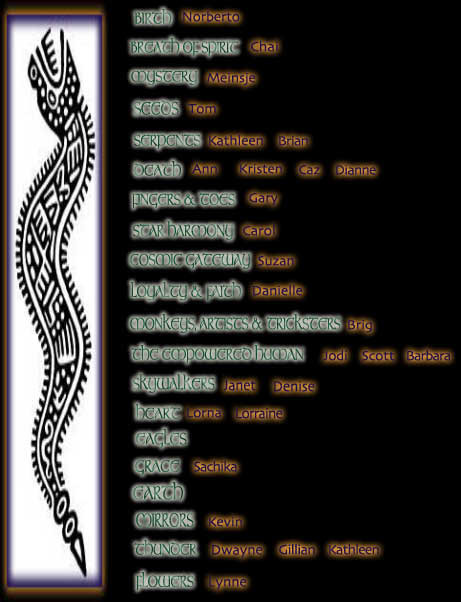 There are 20 temples of the imagination within the Temple of the Feathered Serpent and ideally, each of those 20 will be represented by at least one person. An initial assignment of temples will be guided by, but not limited to, a natural astrological correlation existing between the date of a person's birth, and a particular temple of birth. To determine YOUR temple alignment click here. The complete series of 20 temples and the names of people already representing them, as of May 4, 2003, are shown below: