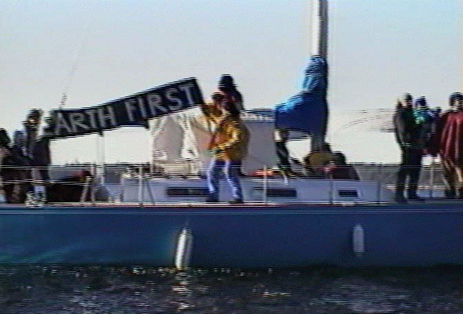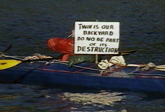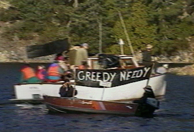TWIN ISLANDS PROTEST FLOTILLA January 1998 MIKE JENKS, ONE OF THE OWNERS OF TWIN ISLANDS (LEFT)
