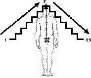 On my own Lightning Path journey of light body activation, an inner temple has been revealed. I call it The Temple of the Feathered Serpent. It is an entirely meta-physical entity that can be evoked through guided imagery. First of all, think of the numerical progression from 1 to 13 as a traveling, wave-like unit of energy as in the diagram below. When combined with hieroglyphs from the sacred Tzolkin calendar, that wave constellates a code of transformation, decipherable through a divinatory reading of its thirteen number and glyph combinations.