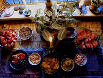 Dwayne Rourke & Teresa Wild Our painting rituals usually begin by fasting from suppertime on the evening before the New Moon until the time we begin painting the following evening. During the day we shop for and prepare a sumptuous evening feast of finger foods. ![]() We prepare the physical space for our sacred ceremony by cleaning it and tidying it. We tend to paint mostly by candlelight so we place new candles on all our altars. We bring in fresh flowers. ![]() Once we begin our ritual, we smudge the whole space with white sage and sweetgrass, making sure to include our painting materials. Playing in the background is our favorite music as we take a scented and purifying bath. Upon exiting the bath, we dress in loose flowing clothes and move to our sacred ceremonial blanket.